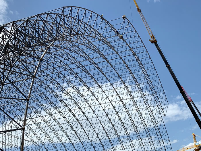 (2)网架加工前应对现场尺寸进行复测,确认无误后方可进行加工、安装;网架制作、运输、安装应遵守《空间网格结构技术规程》JGJ7-2010、《钢网架乌海螺栓球节点》JG/T 10-2009、《钢网架乌海螺栓球节点用高强度螺栓》 GB/T 16939-2016、《乌海钢结构乌海工程乌海施工规范》 GB50755-2012、《乌海钢结构乌海工程乌海施工质量验收标准》 GB50205-2020。